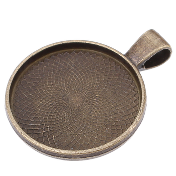 25 مللي متر العتيقة برونزية جولة مجوهرات النقش كابوشون قاعدة الحافة إعداد المعادن قلادة فارغة الصواني مدي